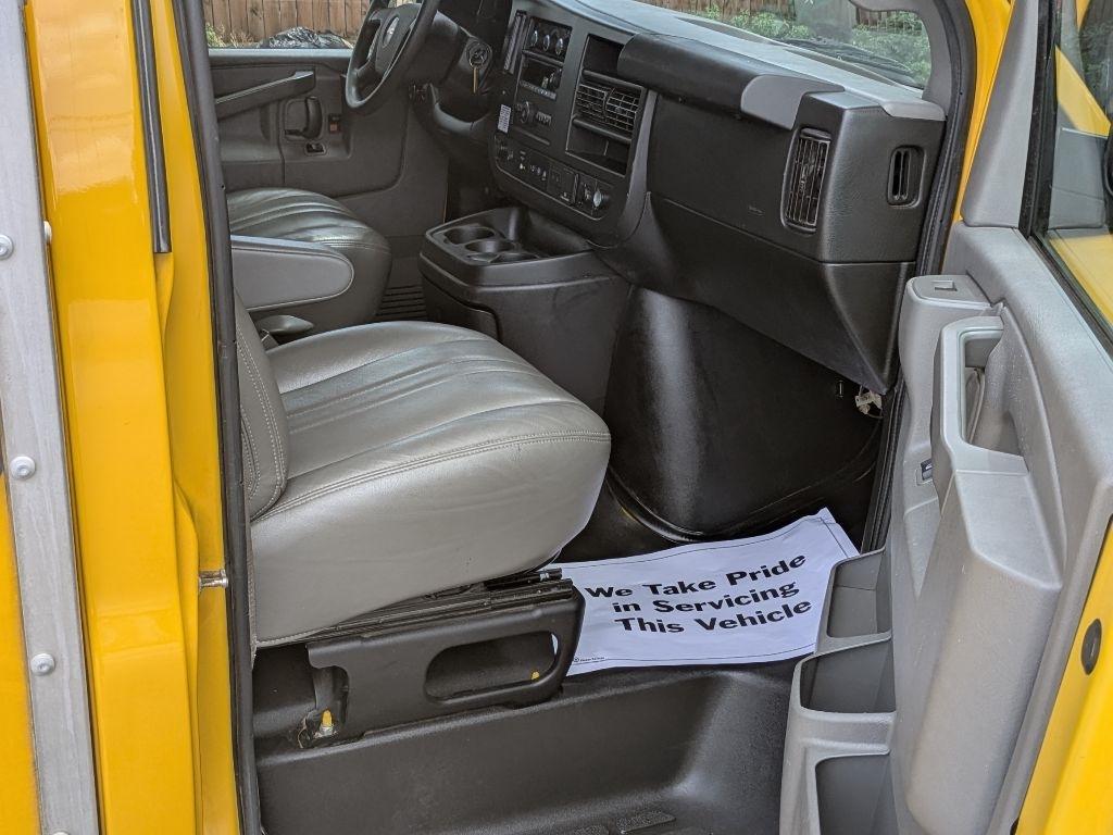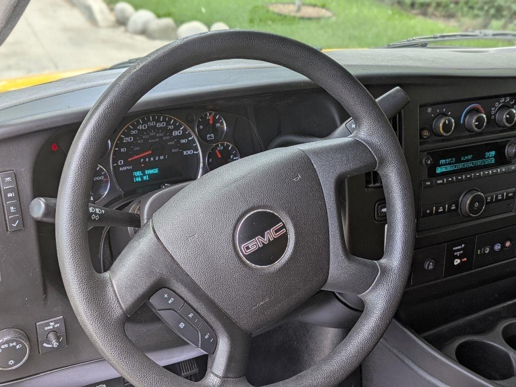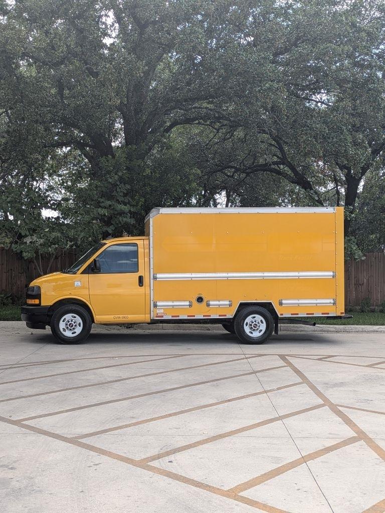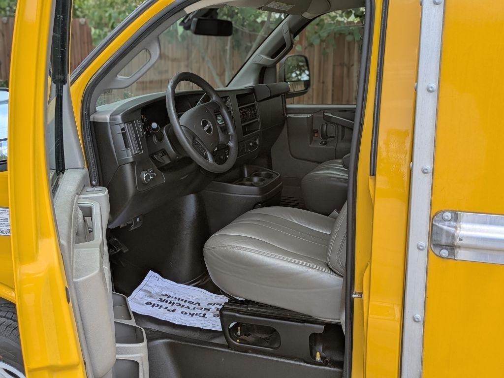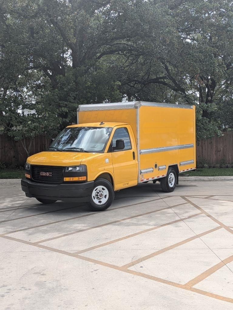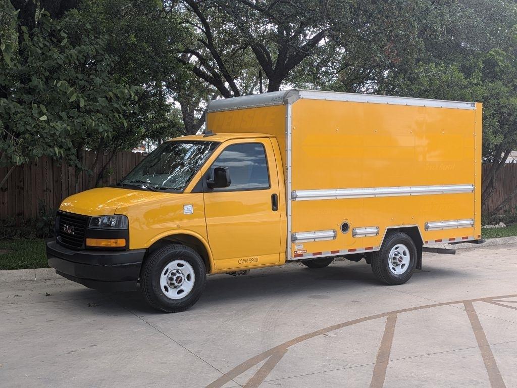 Hop into this vibrant Yellow 2021 GMC Savana and get ready for a wild ride! With a spacious 12FT box truck bed, there's plenty of room for all your gear and gadgets. As you cruise down the road, you'll feel like a boss behind the wheel, thanks to the tilt wheel steering and engine immobilizer keeping you in control at all times. The Sentry Key ensures your precious cargo stays safe and secure while the daytime running lights illuminate your path ahead.